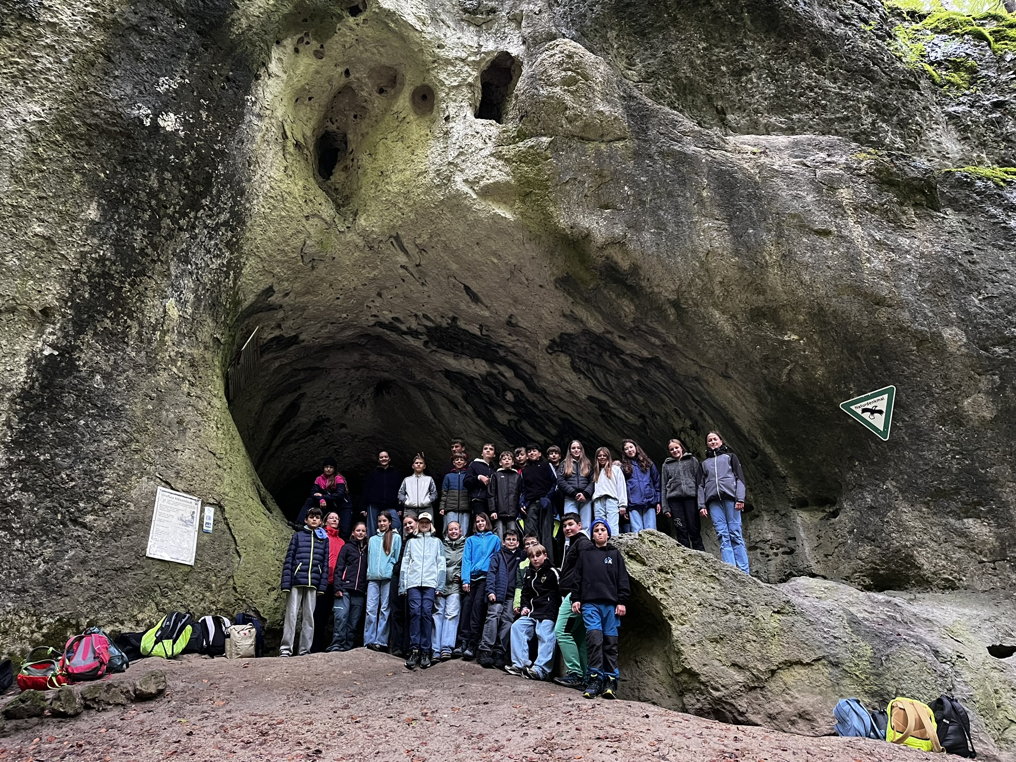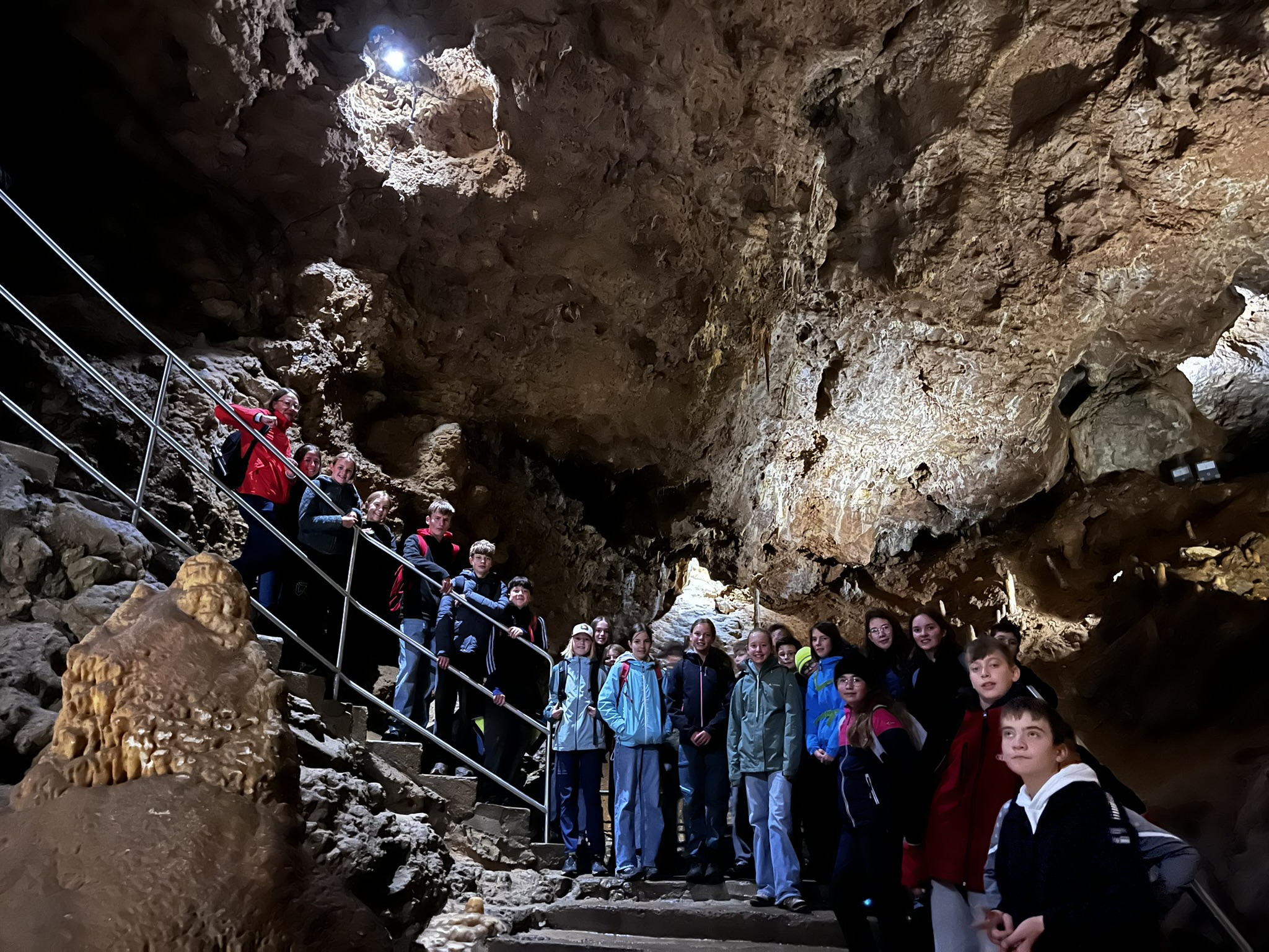 Der Donnerstag führte die Klasse in die Fränkische Schweiz, genauer gesagt nach Pottenstein. Hier warteten gleich mehrere Highlights: zunächst ging es in die beeindruckende Teufelshöhle, wo faszinierende Tropfsteinformationen und unterirdische Gänge für Staunen sorgten. Danach stand eine Wanderung über die steile und sagenumwobene Himmelsleiter an – eine echte Herausforderung mit schöner Aussicht als Belohnung. Den Abschluss des Tages bildete der Besuch der Sommerrodelbahn, der leider wetterbedingt etwas früher enden musste als geplant.