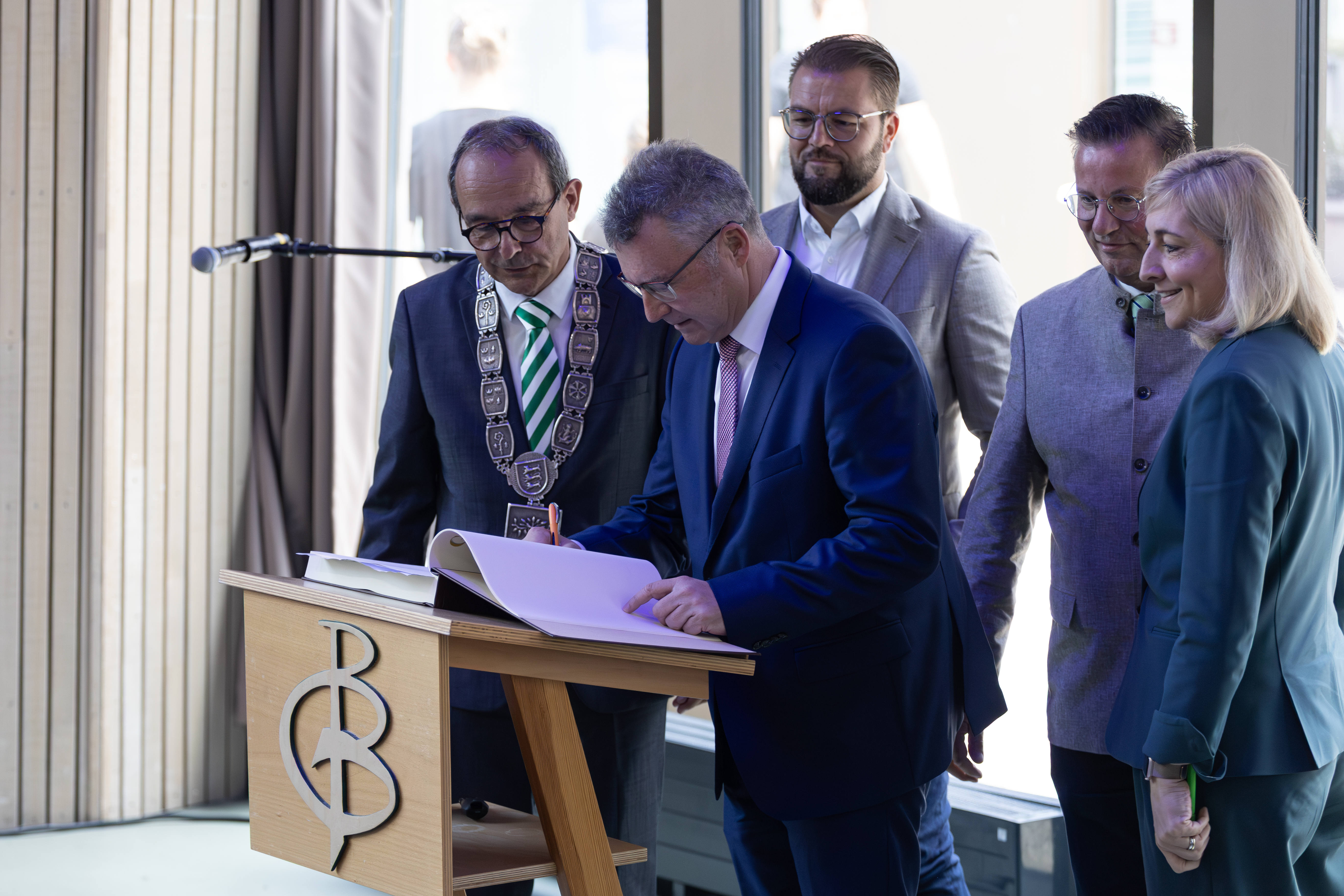 „Es ist großartig, was hier entstanden ist“, lobte Bundesgesundheitsministerin Nina Warken. Das Gebäudeensemble sei funktional und identitätsstiftend zugleich. „Das BGB vermittelt nicht nur Wissen, sondern auch Werte, und das ist heute wichtiger denn je“, so Warken. Minister Peter Hauk sah im neuen BGB das „perfekte Gebäude für eine lebendige Schulgemeinschaft“. Die Schulleitung habe während des Umbaus organisatorische Höchstleistungen erbracht. Sein Dank galt auch den begeisterungsfähigen Lehrern, für die ihr Beruf Berufung sei.