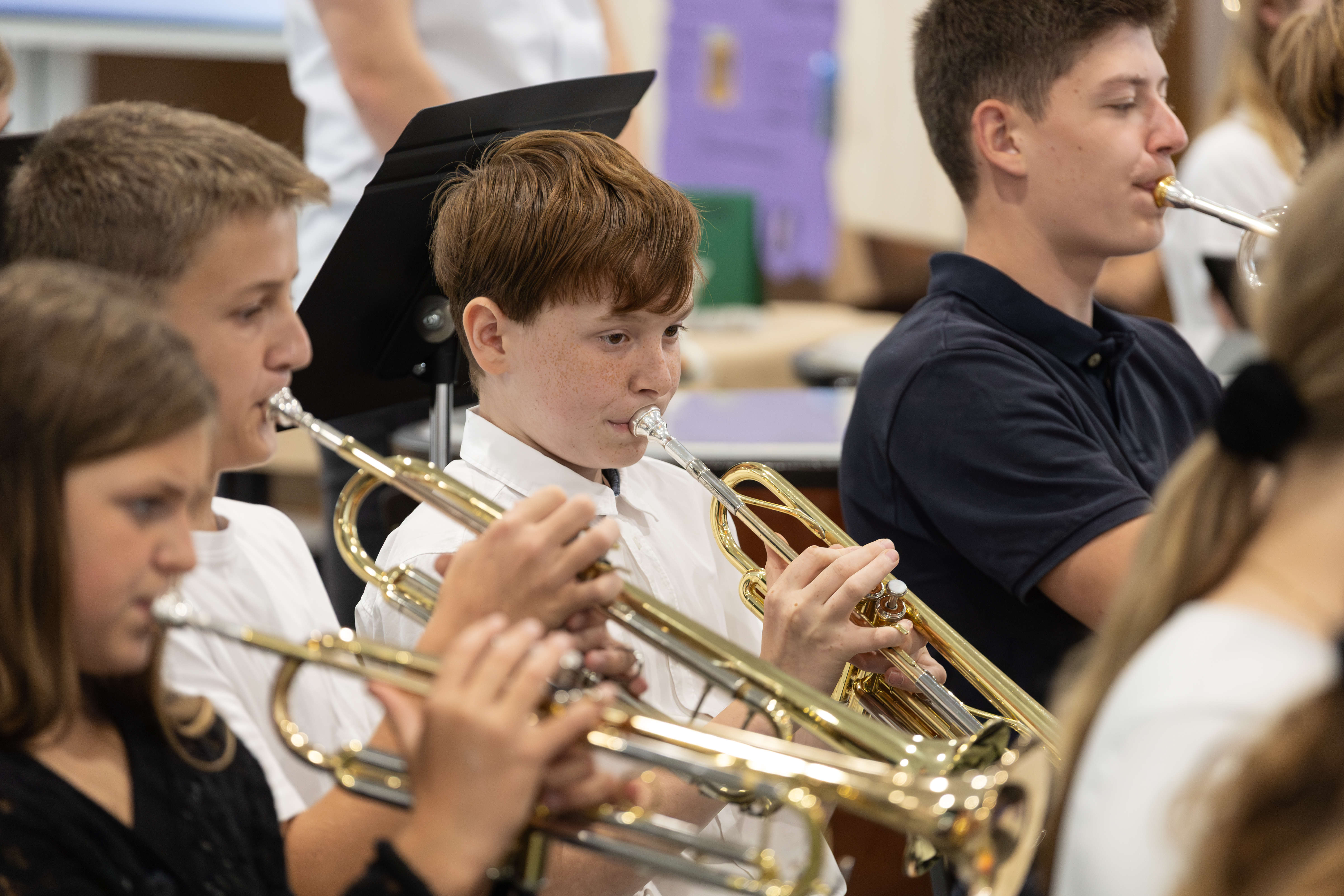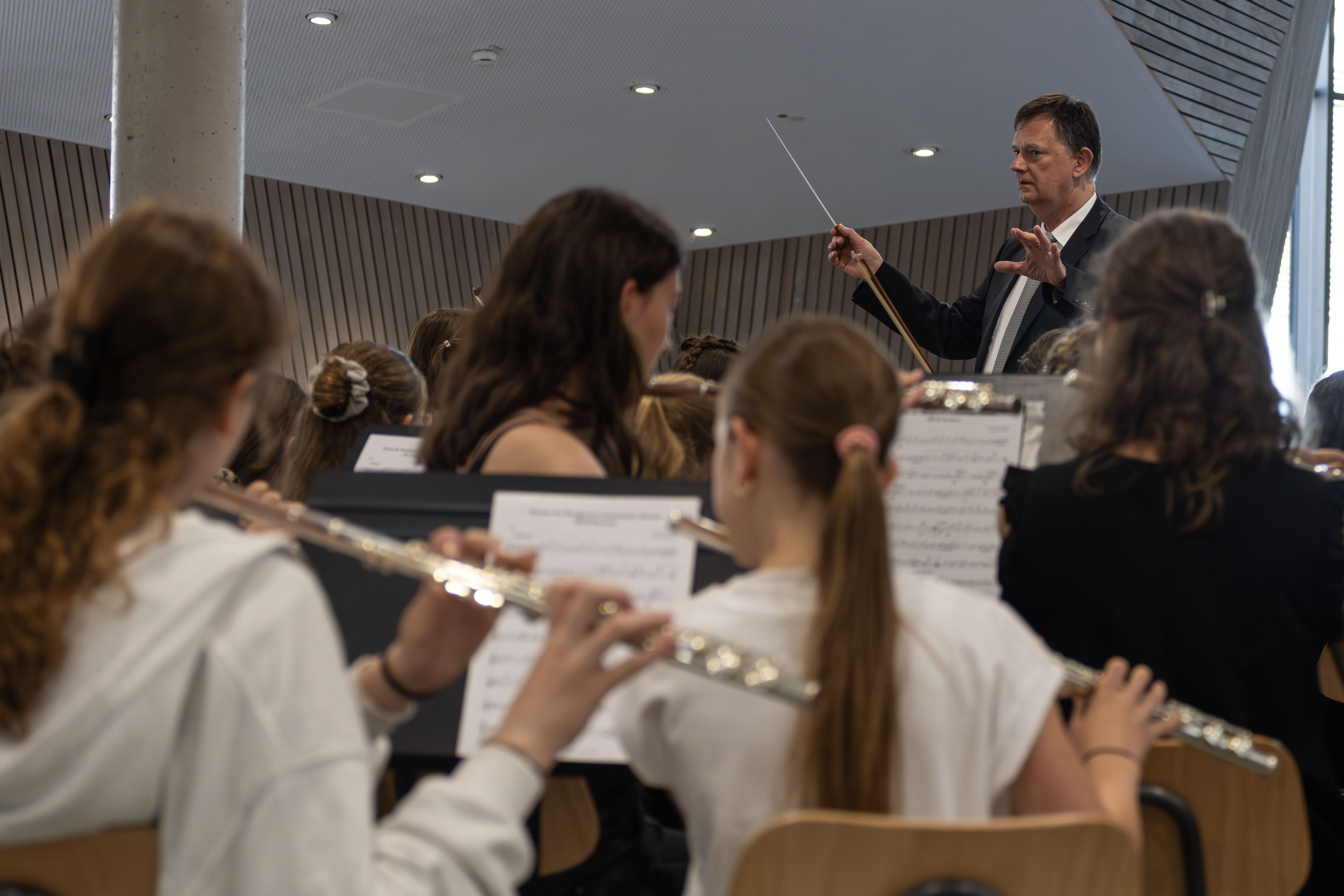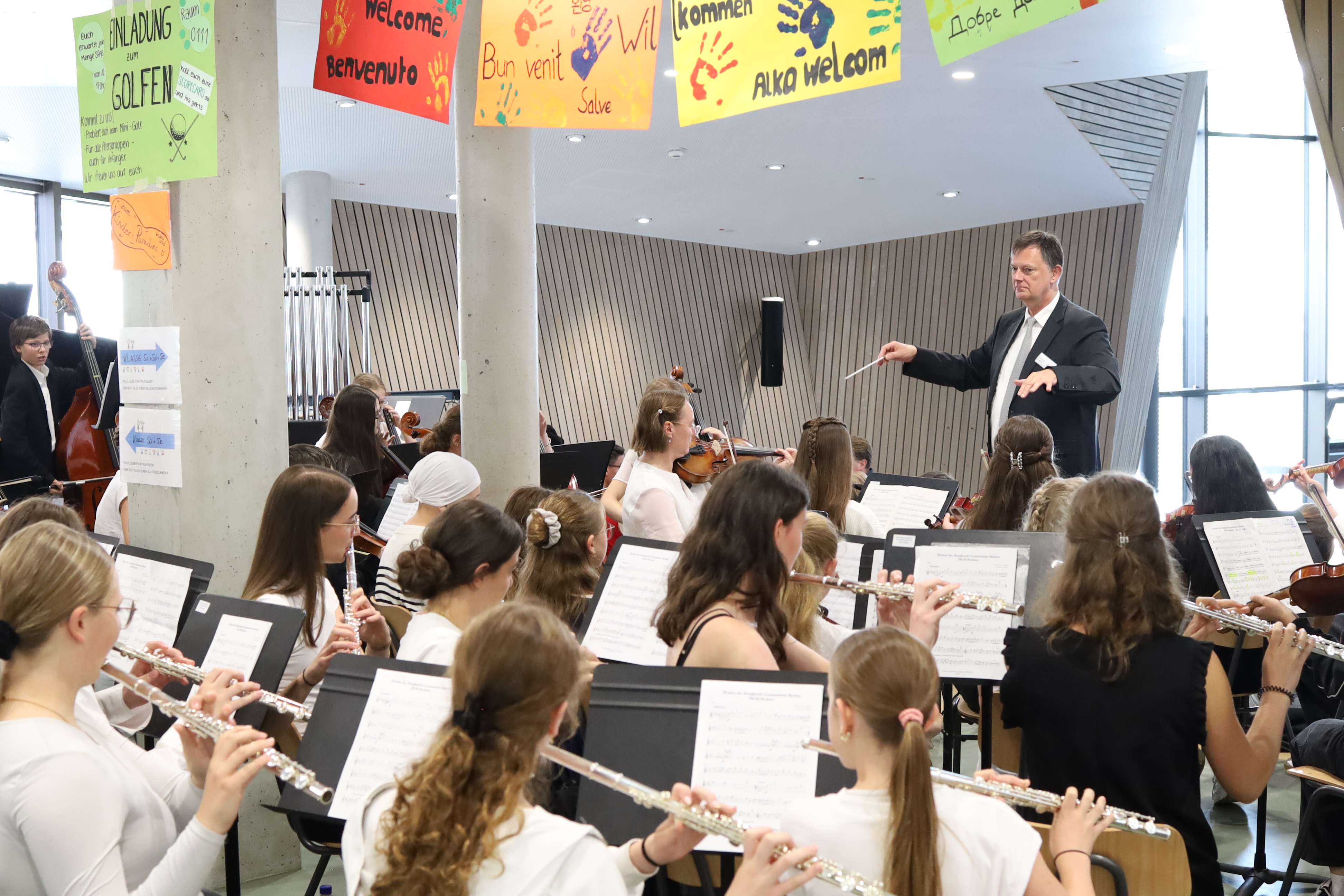 Was sich mit Musiknoten alles ausdrücken lässt, zeigte die mit Fotos unterlegte Aufführung der von Wolf-Dieter Langisch komponierten BGB-Hymne durch das Sinfonieorchester der Schule. Beeindruckend! Gleiches gilt für die von den Lehrerinnen Katharina Kleiser und Michelle Schwingel dargebotene Präsentation zur Anerkennung als Unesco-Projektschule. Das Ziel, eine Kultur des Friedens und eine nachhaltige Entwicklung zu fördern, werde schon jetzt an der Schule auf vielfältige Weise verfolgt: in Arbeitsgemeinschaften und Projekten, beim Schüleraustausch oder ganz aktuell in der neuen Indoorfarm. „Es ist fantastisch zu sehen, was hier geleistet wird“, kommentierte Klaus Schilling, Bundeskoordinator der Unesco-Projektschulen, die Präsentation. Er charakterisierte das BGB als wache und handlungsstarke Schule, in der der Geist der Zusammengehörigkeit spürbar werde. Ein großes Kompliment richtete er an Jochen Schwab und dessen Team für die 2022 gezeigte Bereitschaft, ukrainischen Schülern eine Auszeit zu ermöglichen.