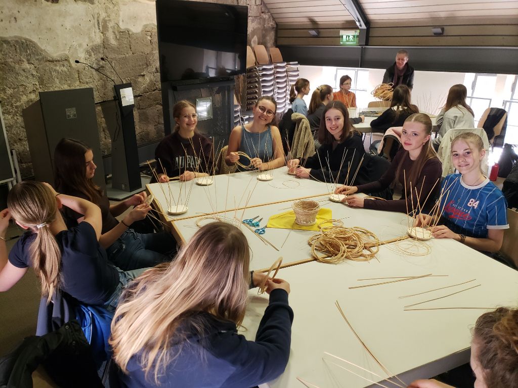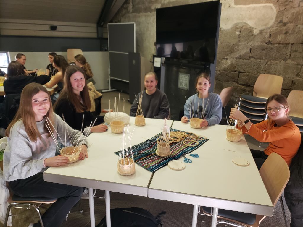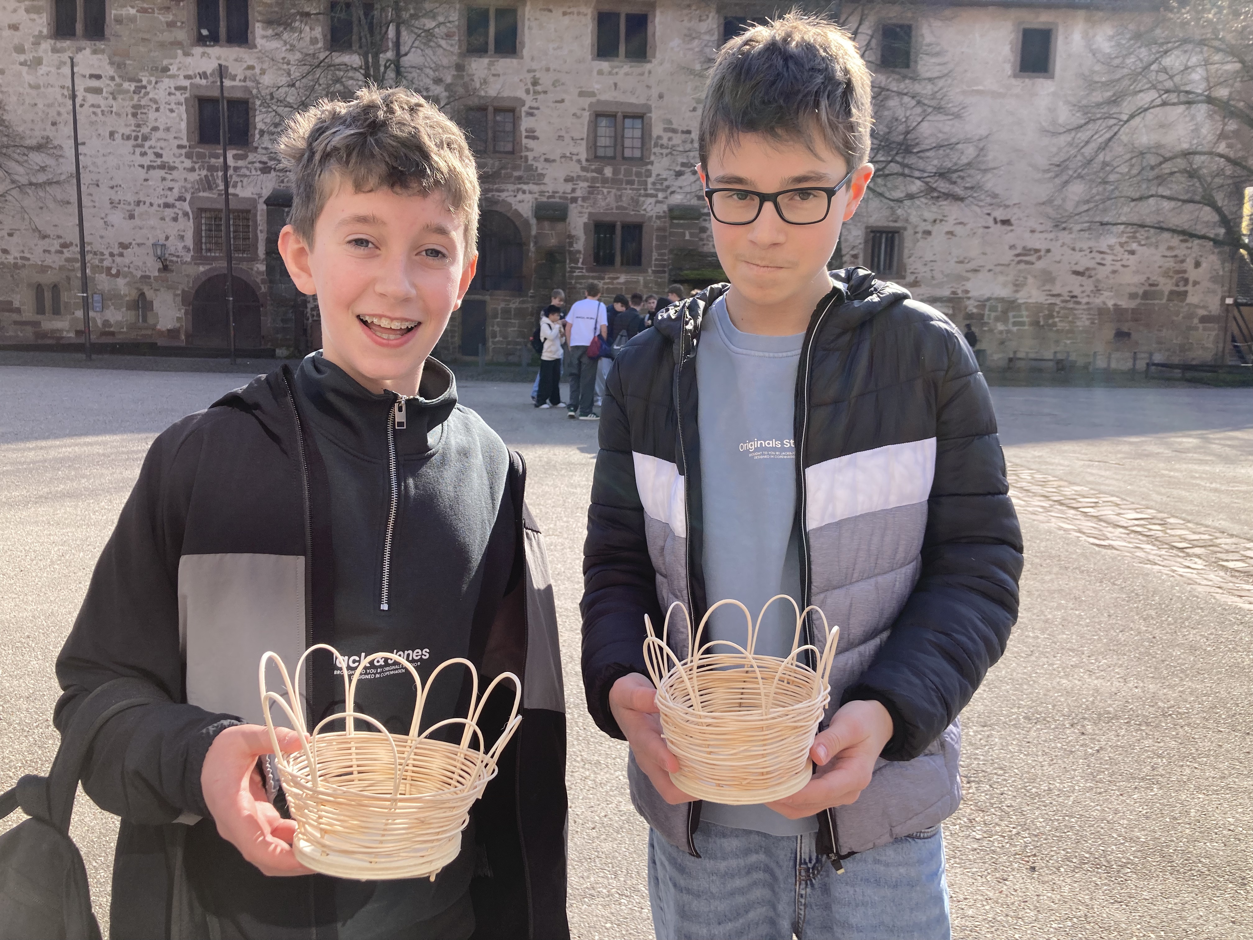 Zum Abschluss durften wir selbst aktiv werden. In einem Workshop konnten wir ausprobieren, wie sich der Alltag im Kloster angefühlt haben muss. Man konnte selber Seife herstellen, eigene Lederbeutel machen oder seinen eigenen Korb flechten. Wir merkten schnell, dass man früher viel Geduld und Geschick haben musste. Es war eine tolle und lehrreiche Abwechslung zum Unterricht, die uns auch gezeigt hat, wie mühsam die Dinge früher waren. Am Ende des Tages waren wir uns alle einig, ein Leben im Kloster ohne Smartphone ist zwar schwer vorstellbar, aber die Ruhe, die Abgeschiedenheit von der Außenwelt und die unglaubliche Architektur in Maulbronn haben uns echt beeindruckt. Nach diesem kurzweiligen Tag mit viel Spaß traten wir unsere Heimreise an.