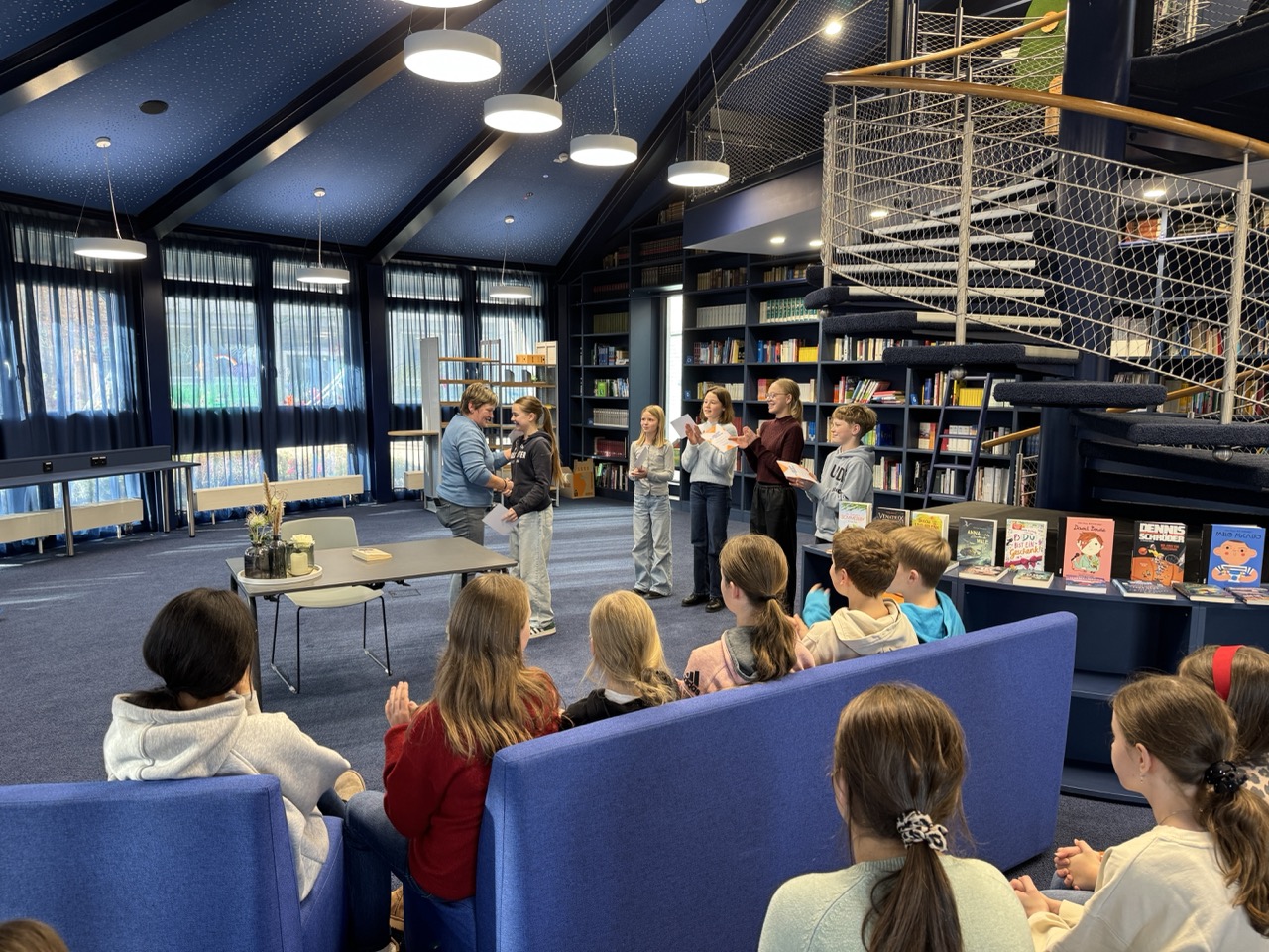 Im Anschluss an den Wettbewerb erhielten alle Klassensiegerinnen und Klassensieger ein Buchgeschenk, das von der Buchhandlung Volk gestiftet wurde. Dafür möchten wir uns herzlich bedanken!