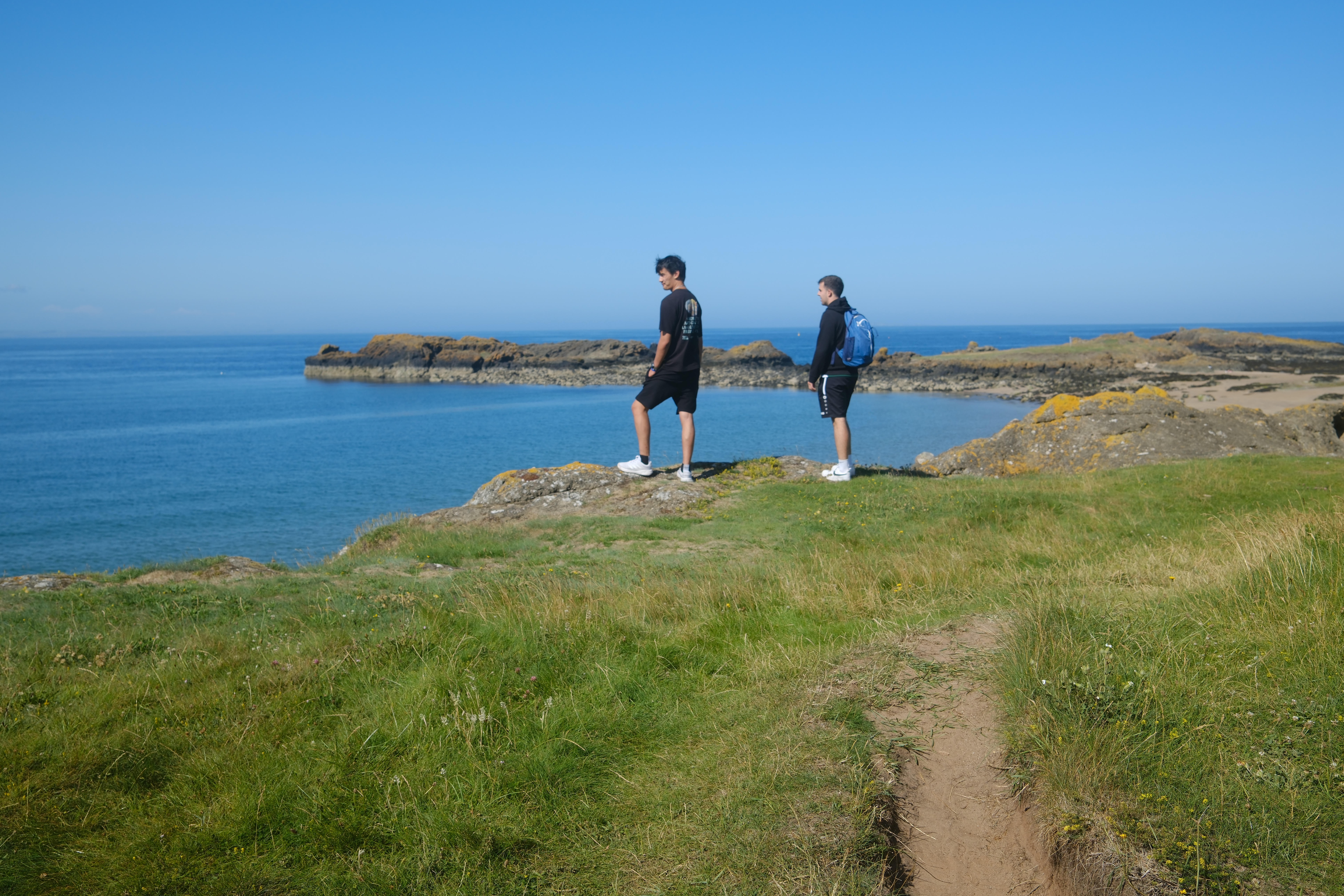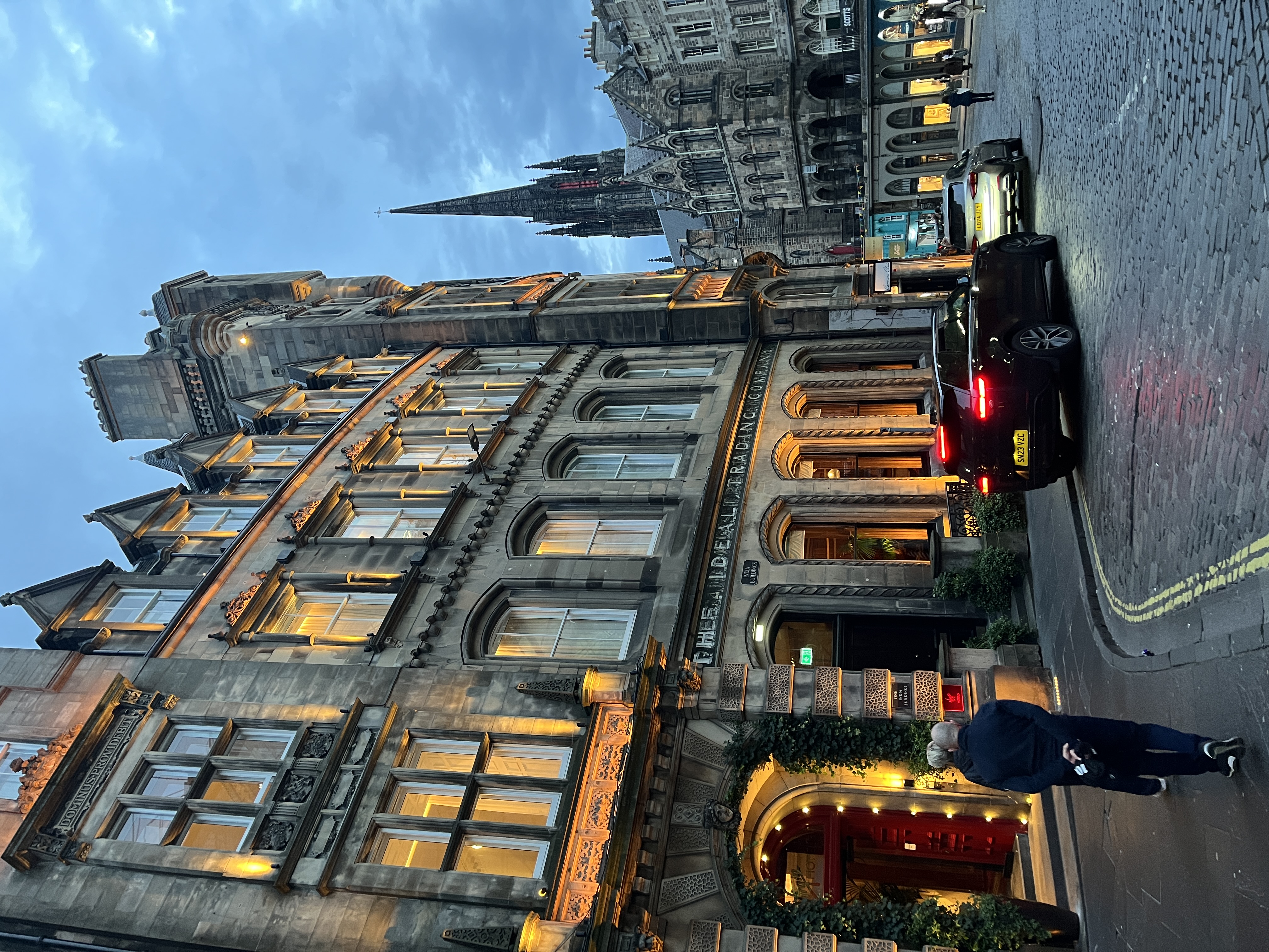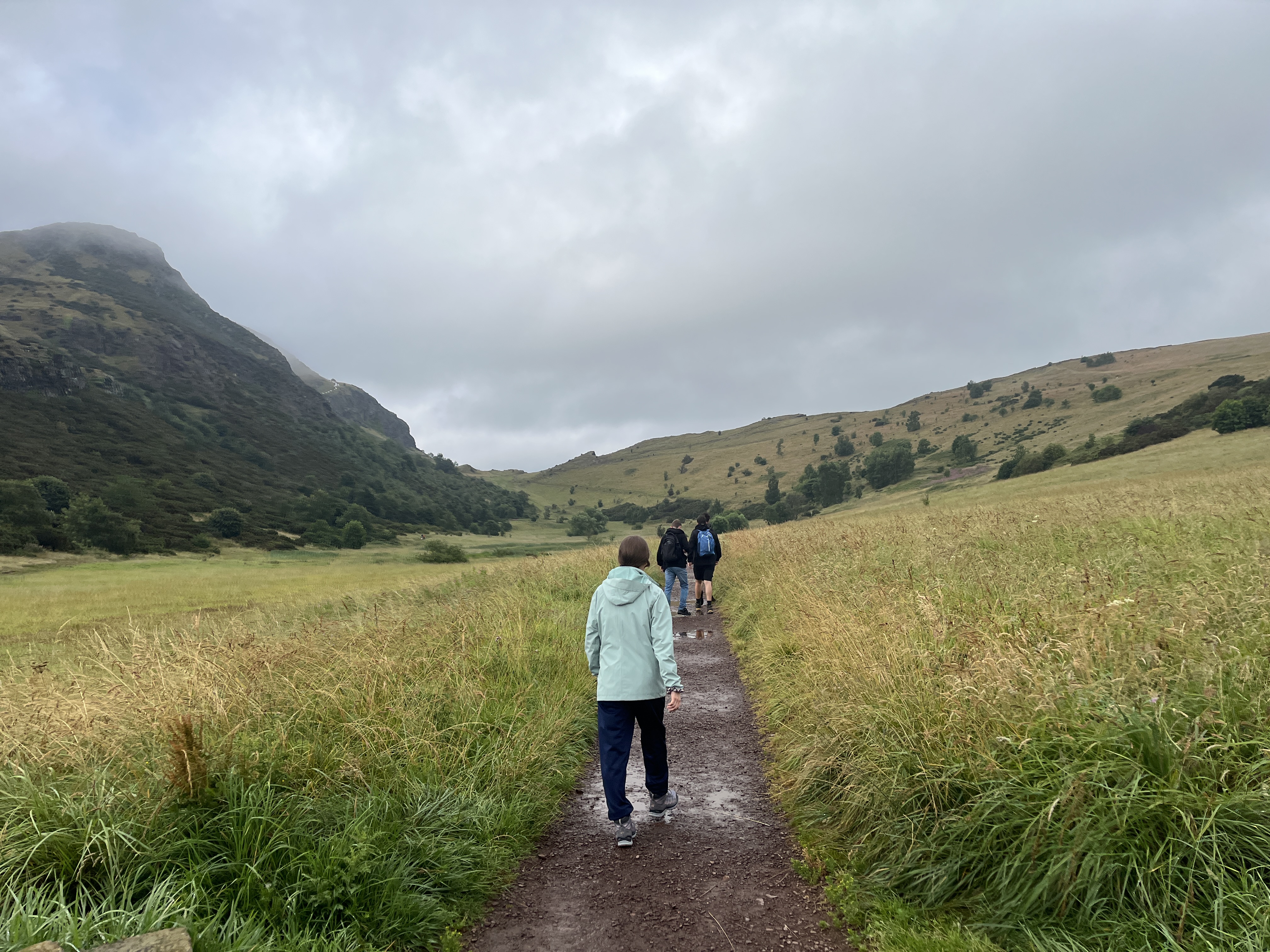 Die Studienfahrt konnte beginnen. Schottland begrüßte uns auf die einzig richtige Art: mit einem Wikinger. Nein, kein Tourist in historischer Montur – wir reden von einem waschechten Wikinger. Oder zumindest einem schottischen Herrn in Fellweste mit Trinkhorn und Axt, den wir einstimmig als „echt“ anerkannten. Die Busfahrt zum Hostel verlief in seltsamem Licht – wortwörtlich. Im Bus herrschte eine Atmosphäre, die nur als „dubioses Licht“ bezeichnet werden kann. Kaum waren wir im Zentrum von Edinburgh angekommen, stand schon die erste „Wanderung“ an: Berg hoch, Berg runter und das alles mit vollgepackten Koffern über das Kopfsteinpflaster. Wer hier zufällig laut fluchende Jugendliche gesehen hat – ja, das waren vermutlich wir. Endlich am A&O-Hostel angekommen – oder, wie wir es bald nannten, „Aua & Oje“ – stellte sich heraus, dass die Zimmer der Inbegriff von „Abenteuer“ waren. Trotzdem gelang es unseren Lehrkräften, Herrn Müller und Herrn Götz, mit bewundernswerter Ruhe und trockenem Humor das Beste aus der Situation zu machen. Der erste Tag stand im Zeichen der kulturellen Annäherung: Unsere Lehrkräfte organisierten eine persönliche Stadtführung durch die Altstadt, welche uns durch Gassen führte, vorbei an geschichtsträchtigen Mauern und unterstrichen durch interessante Anekdoten. Es war informativ, unterhaltsam – und vor allem eins: authentisch. Anschließend sollte ein Museumsbesuch folgen, der allerdings mit einer gewissen räumlichen Verwirrung begann: „Wo genau ist eigentlich das Museum?“ Im Anschluss eroberten wir das Edinburgh Castle, das fast so magisch ist wie das echte Hogwarts. Mittwochs wagten wir uns an den legendären Arthur´s Seat – einen erloschenen Vulkan, der uns mit einer frischen Windbrise und einer wundervollen Aussicht über Edinburgh begrüßte. Um die Anstrengung des Vormittags auszukurieren, ging es für uns ans Meer nach North Berwick. Der Plan: früh los, Zug nehmen, entspannen. Die Realität: ein Ticketautomat, der mit der Geschwindigkeit eines philosophierenden Faultiers arbeitete. Während der Automat jedes der 22 Tickets einzeln und mit bedächtiger Hingabe ausdruckte, fuhr unser Zug mit fröhlichem Pfeifen davon. Kein Problem – der nächste Zug ließ nicht lange auf sich warten. Was wäre eine Studienfahrt ohne ein gemeinsames Essen? Genau das taten wir an diesem ereignisreichen Tag, um zusammen den Abend einzuläuten. Ein weiteres Ausflugsziel unserer Studienfahrt war Glasgow. Eine charmante Stadt mit kunstvoll verzierten Betonwänden und einem Friedhof, der zur Sehenswürdigkeit wurde.