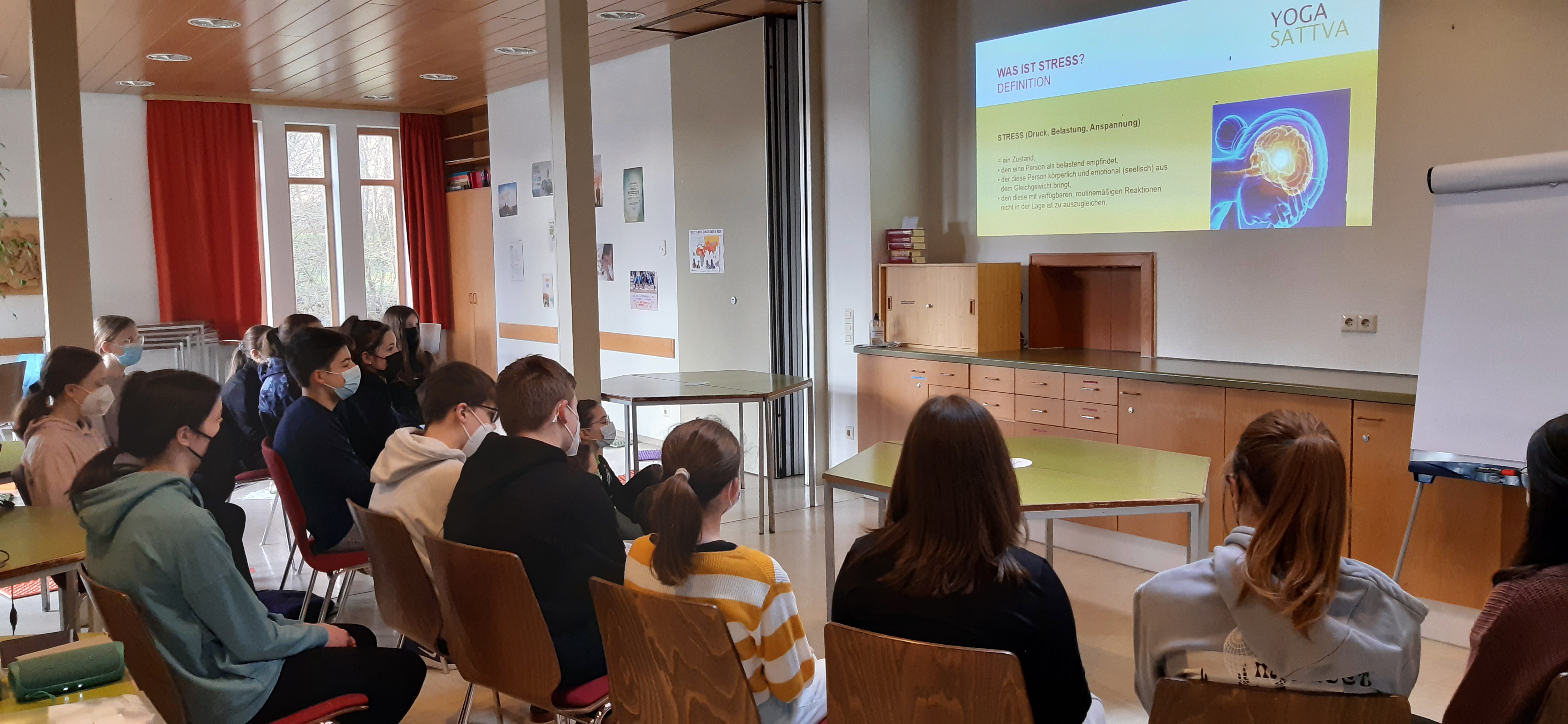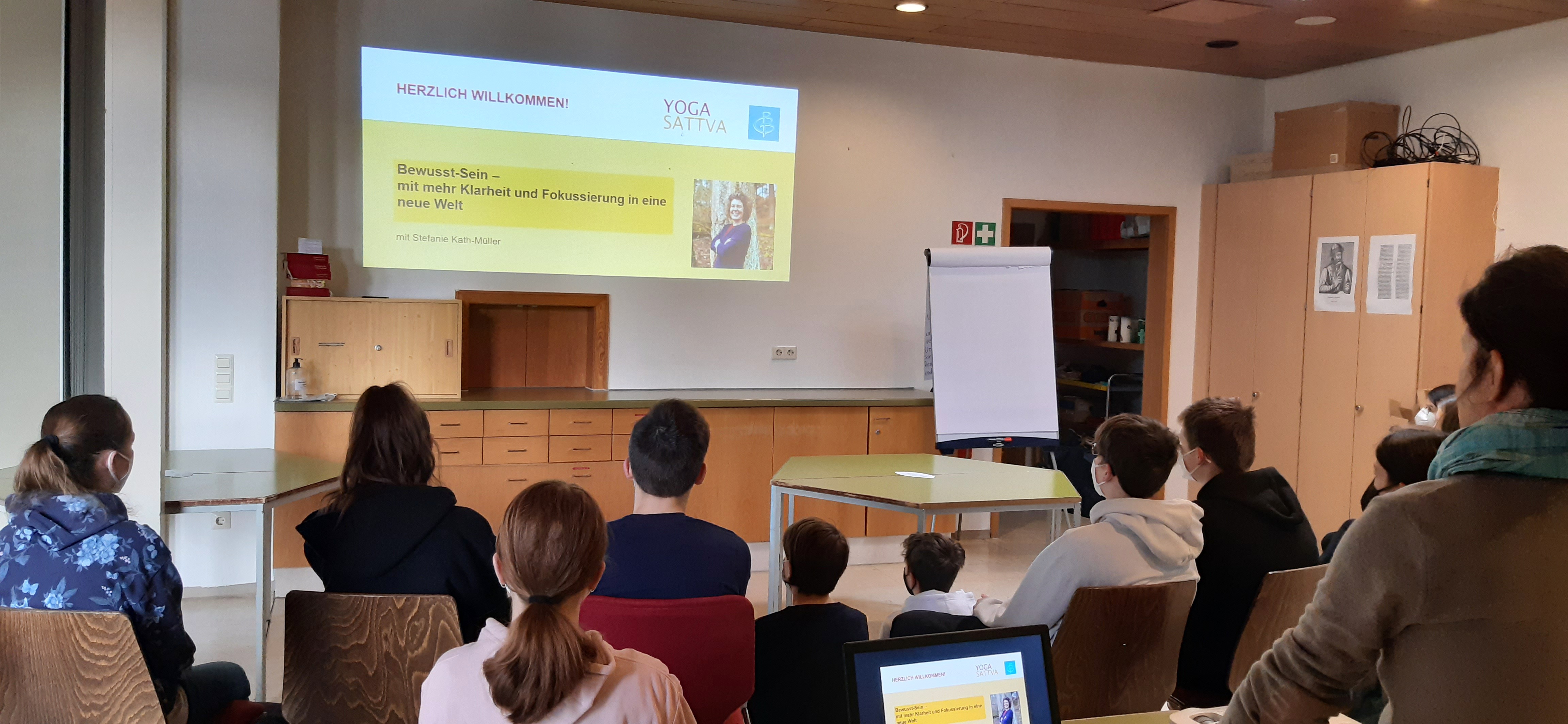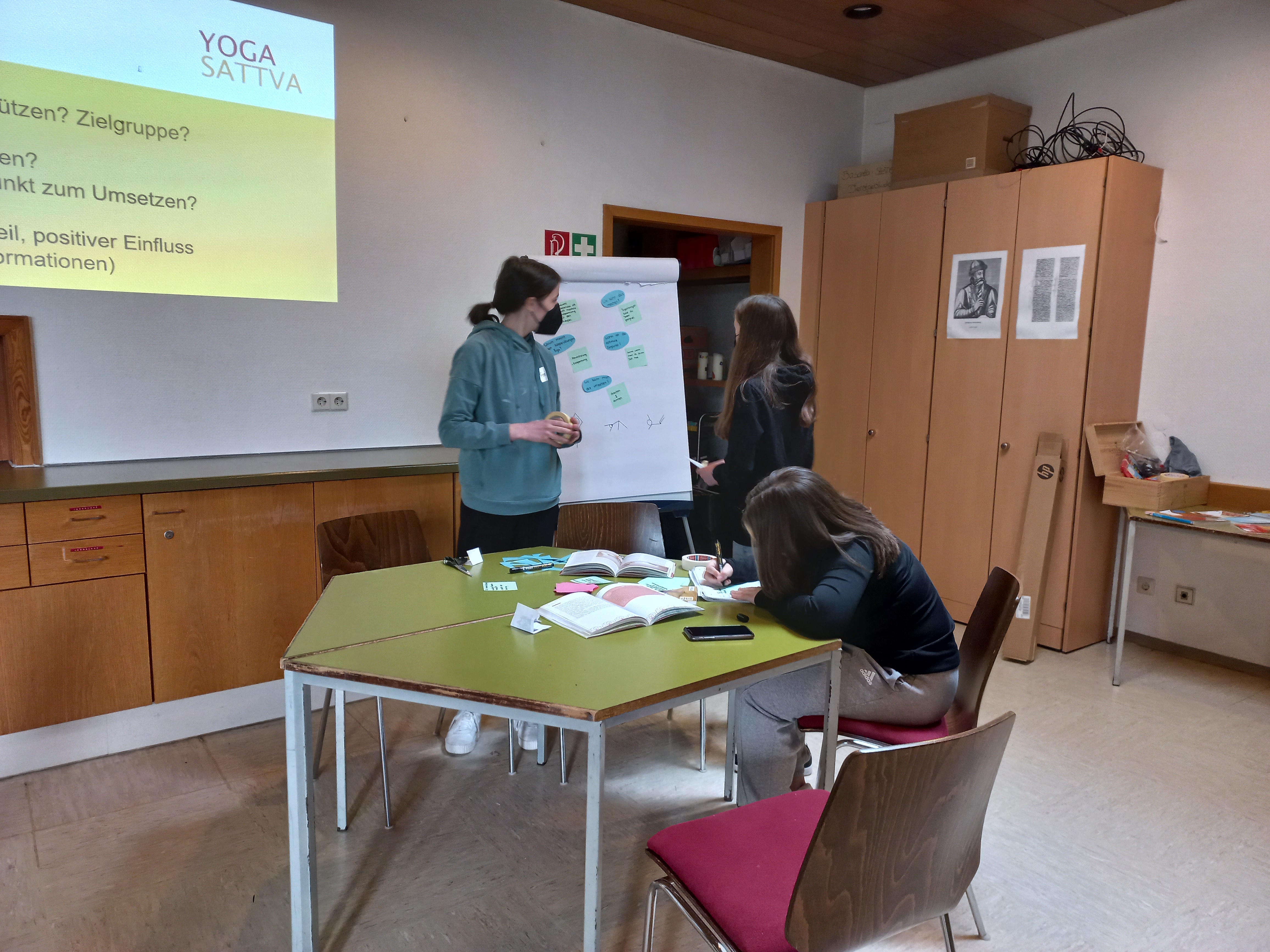Den eigenen Körper besser kennenlernen, Atemtechniken ausprobieren, etwas über Ernährung erfahren – alles Punkte, die im Rahmen des Yogaworkshops auf dem Tagesplan standen. Eine Referentin von Yoga Sattva brachte in den Räumlichkeiten der evangelischen Kirche den Schüler*innen Yoga als ganzheitliches Konzept näher.