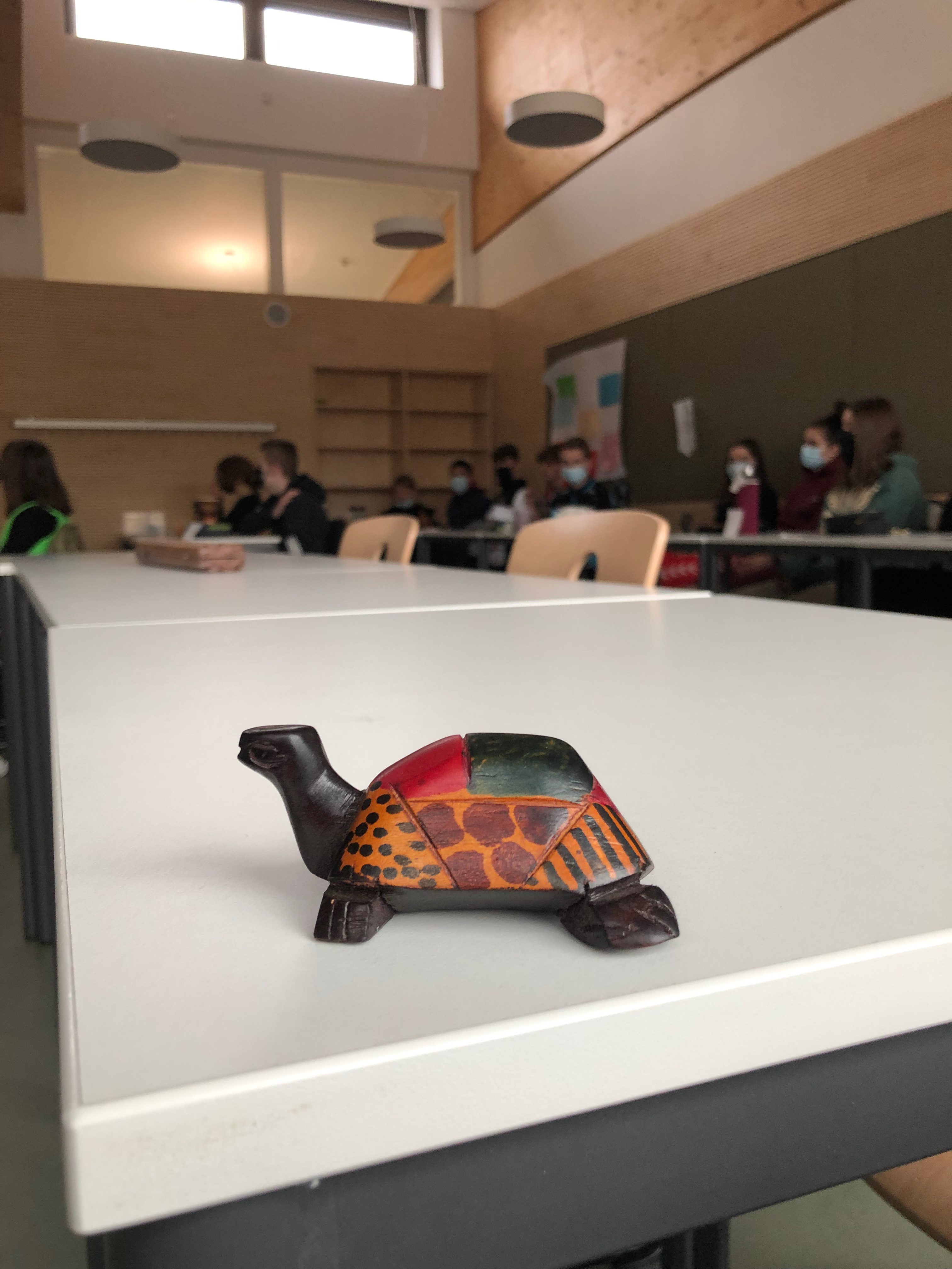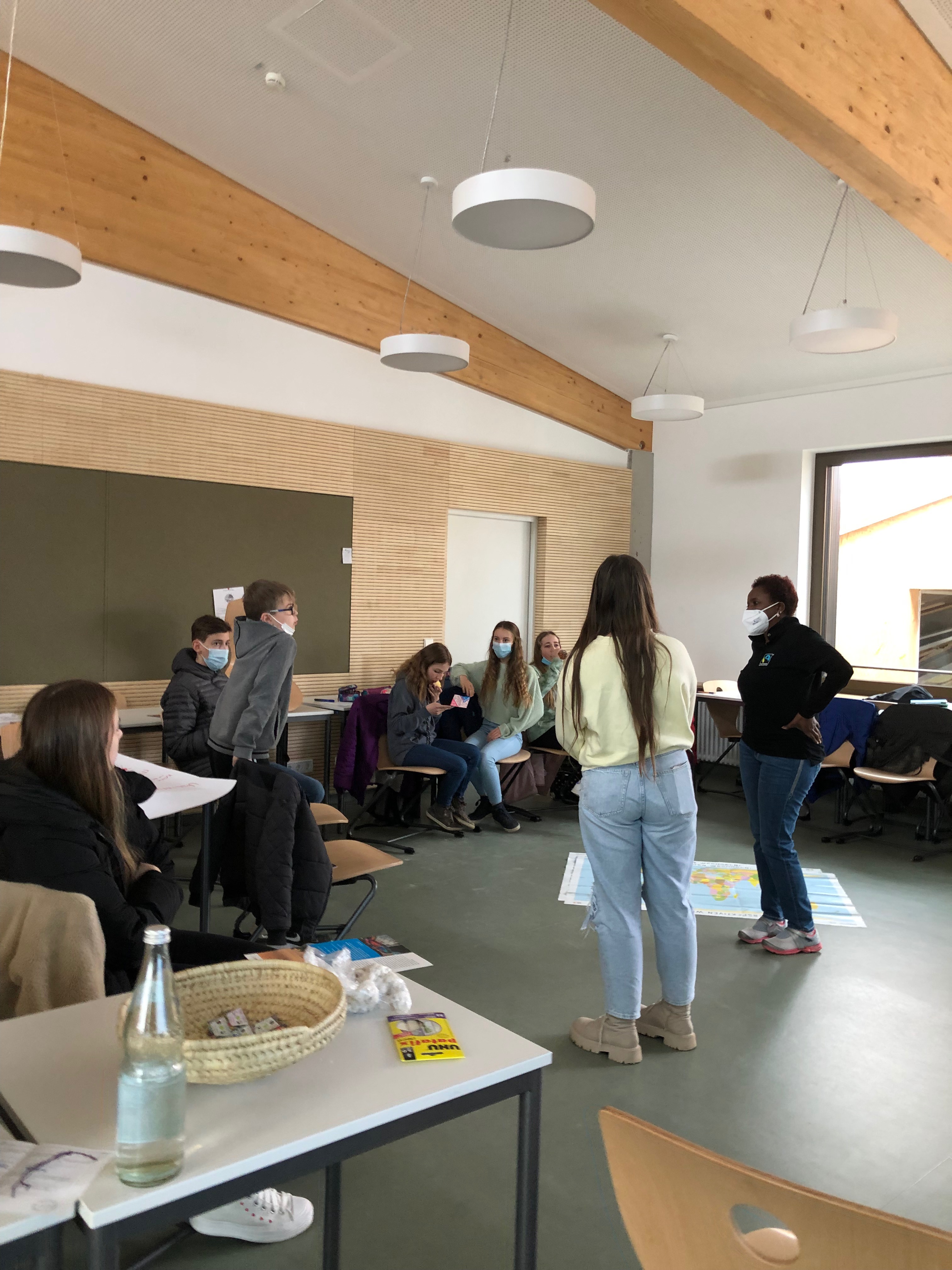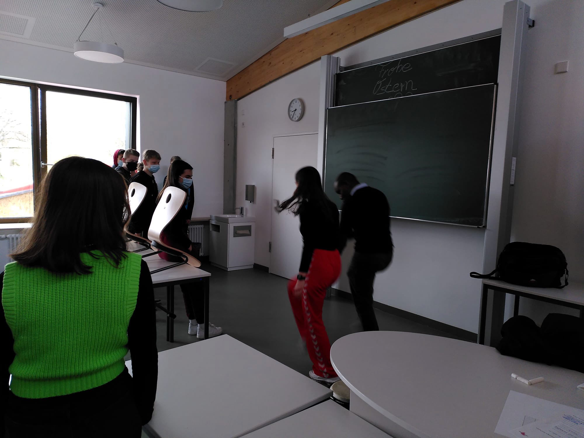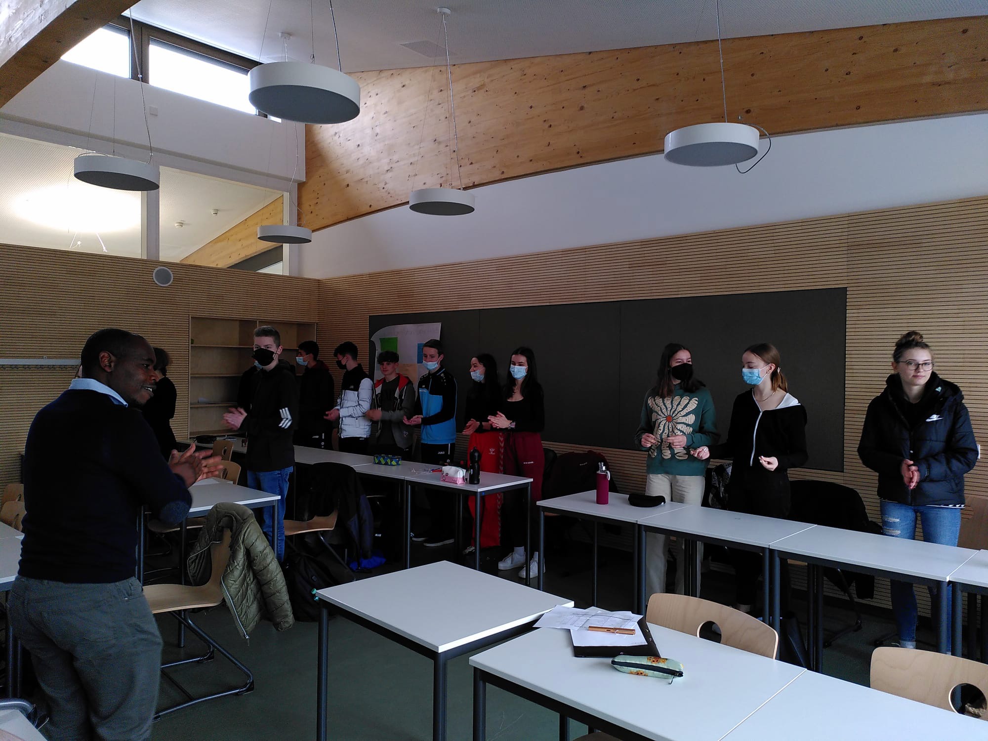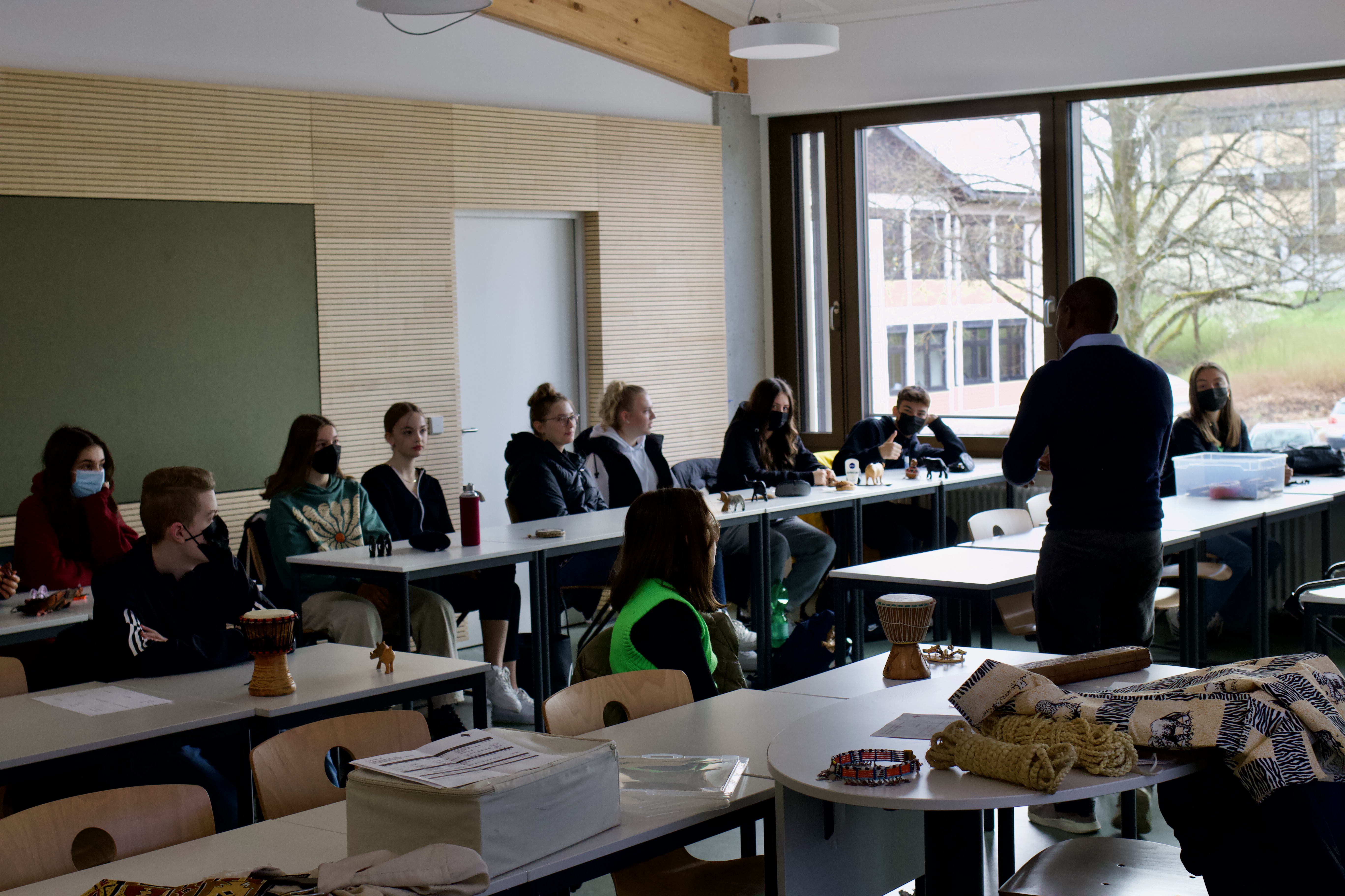 Simeon Kirui, der ursprünglich aus Kenia stammt, brachte in seinem Workshop „Was ist Afrika?“ den Schüler*innen den afrikanischen Kontinent mit seinen verschiedenen Menschen, Kulturen und Sprachen, aber auch mit seinem Ressourcenreichtum näher. Die Teilnehmer*innen erhielten einen realistischen Überblick über Afrika und konnten beispielsweise durch Tanz und Musik in afrikanische Kulturen und Lebensweisen eintauchen.