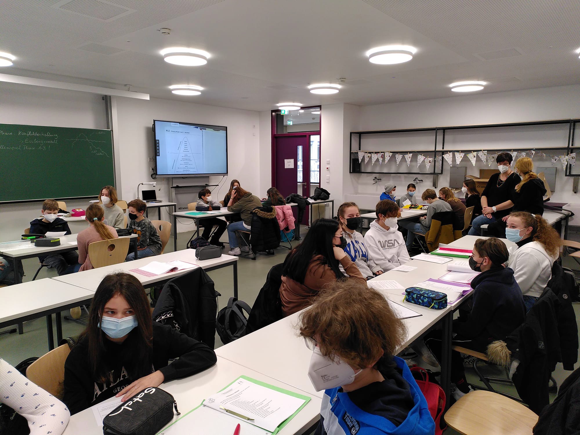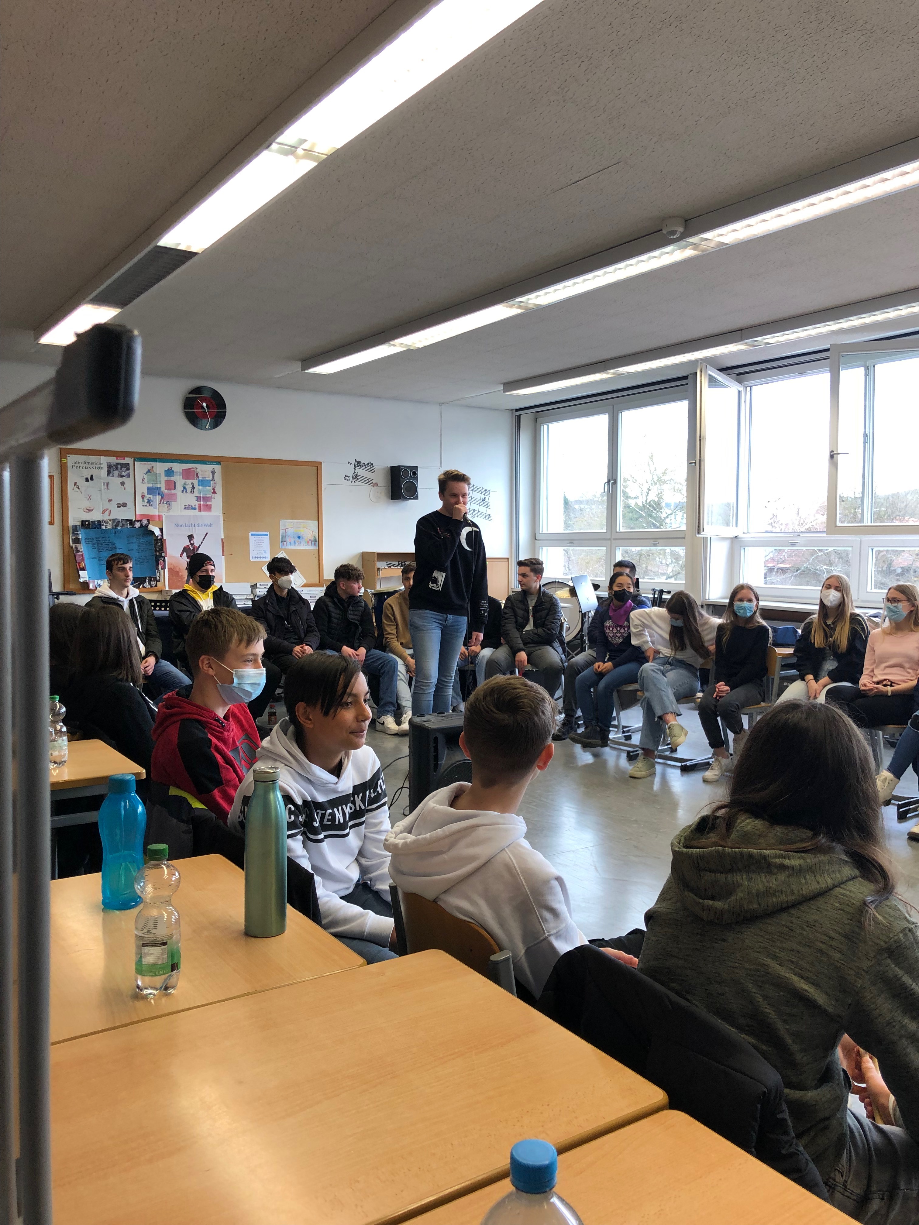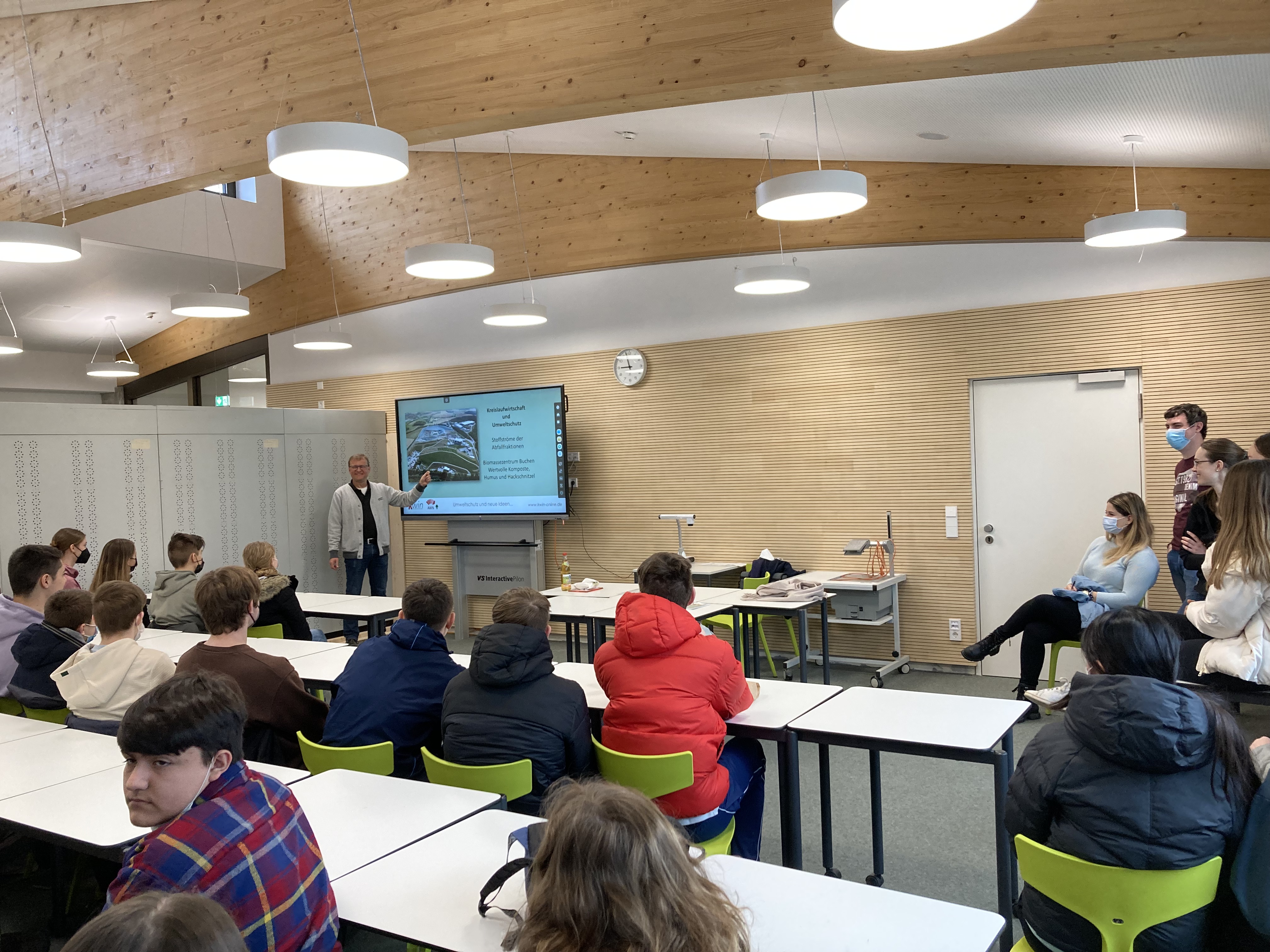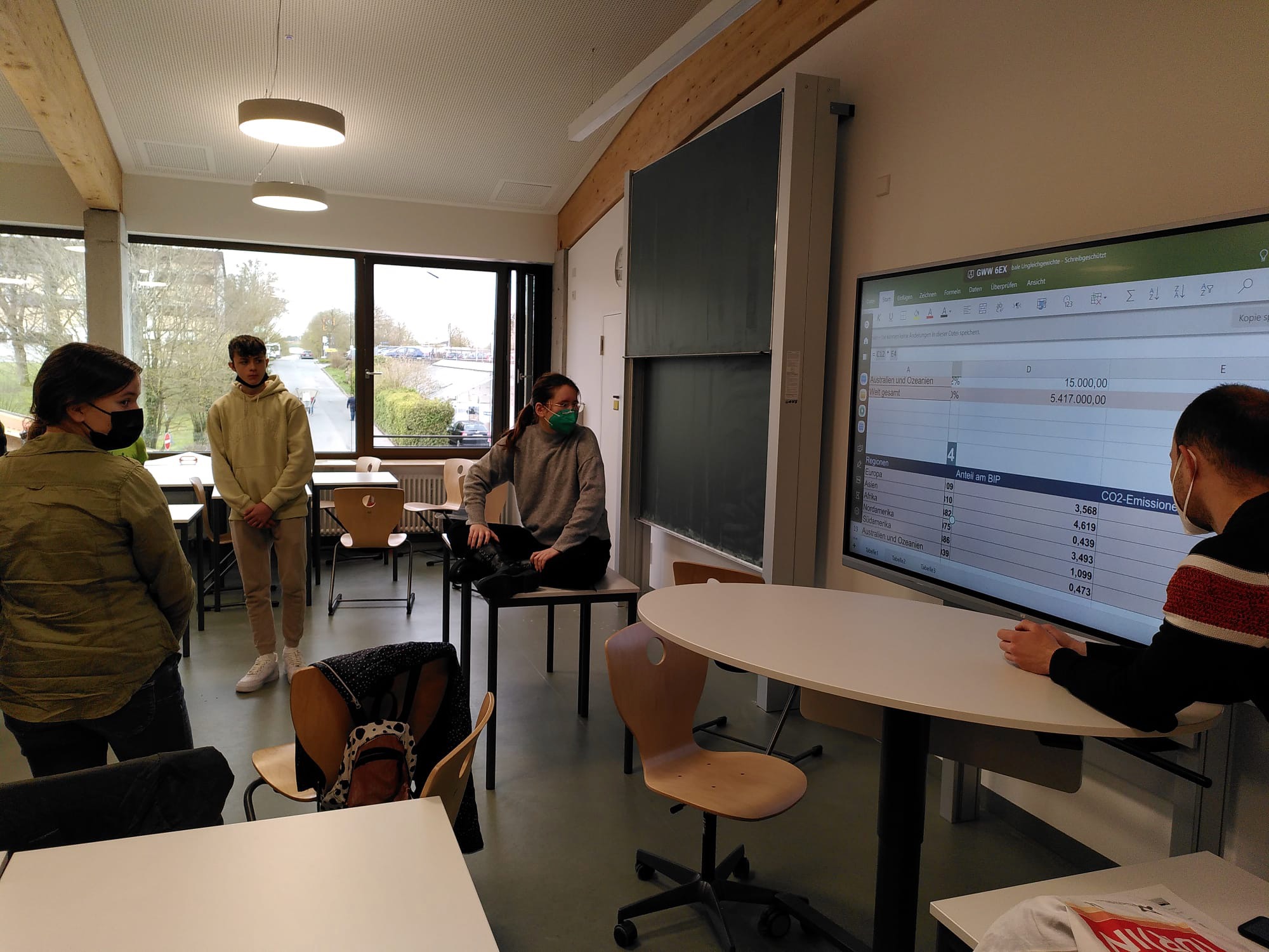 Eine Gruppe Schüler*innen fuhr in die Klima Arena in Sinsheim, wo sie sich zwischen zwei Workshops entscheiden konnten, in denen je die Themen Windkraft sowie ökologischer Fußabdruck behandelt wurden. In ersterem konnte Wissen zu erneuerbaren Energien sowie den Vor- und Nachteilen von Windkraftanlagen erlangt werden, wonach in der Simulation eines Stadtrats von den Teilnehmer*innen die Kompromissfindung zugunsten erneuerbarer Energien für Städte erprobt werden konnte. Nach einer Führung hatten die Schüler*innen noch die Möglichkeit, selbst die Klima Arena zu entdecken und anhand innovativer Technik sowie Bauten einen Blick in die Zukunft zu wagen.