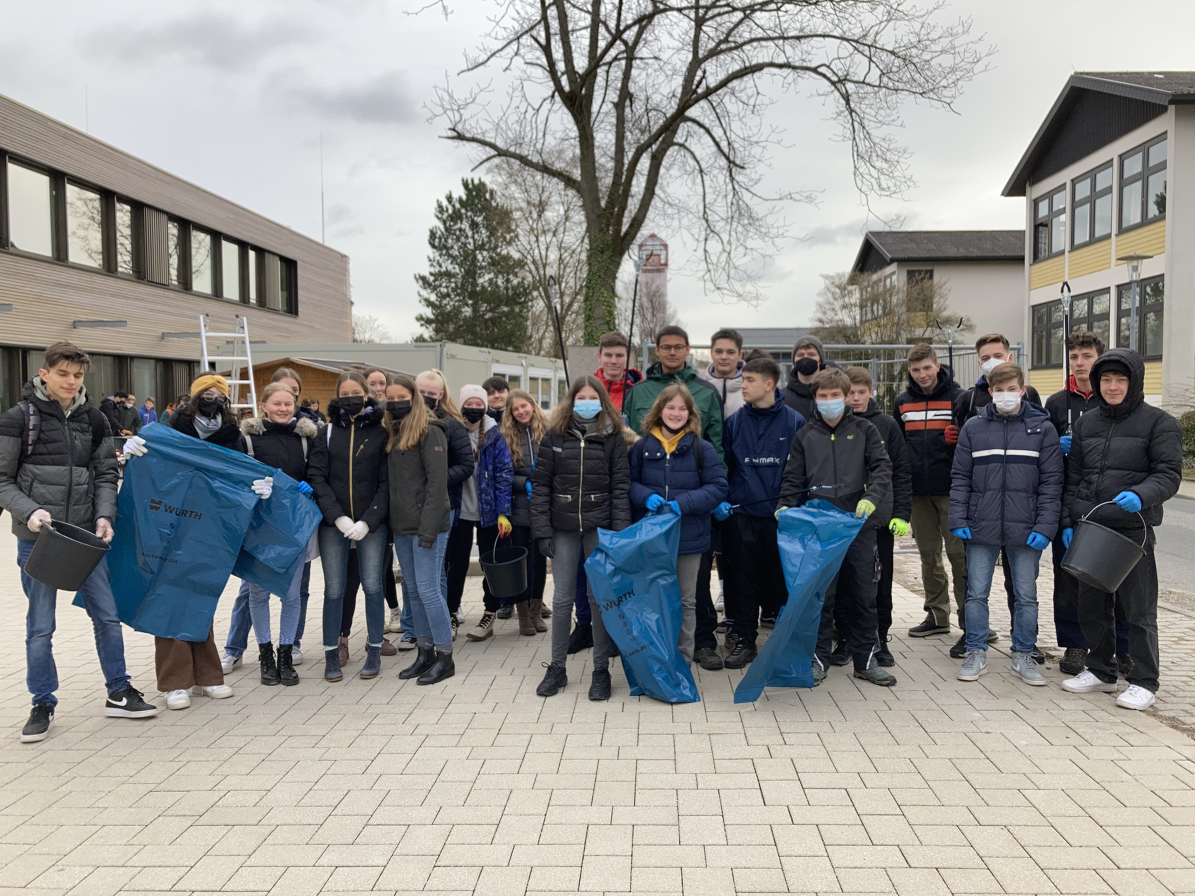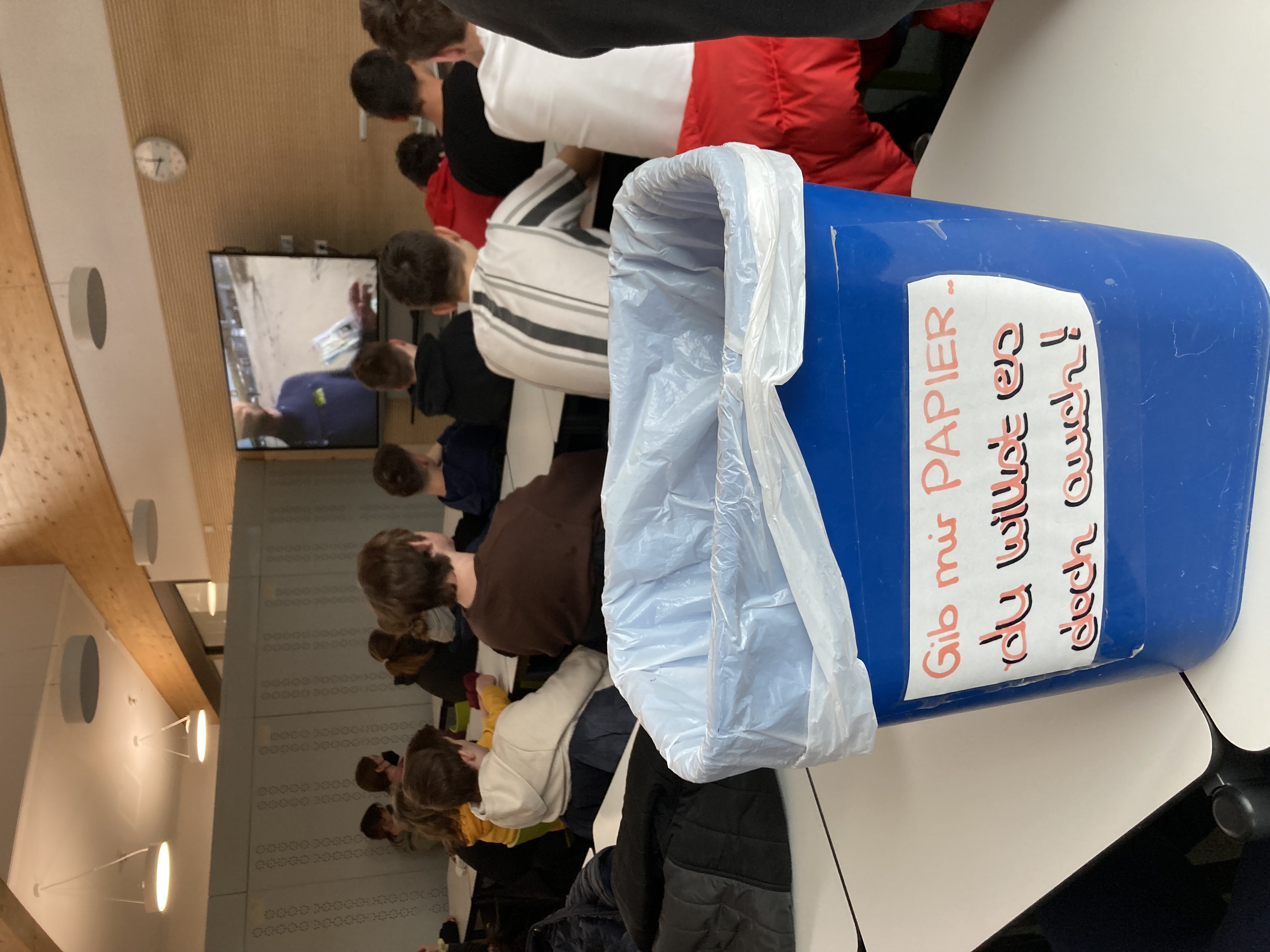 Nach einem Vortrag zur Abfallwirtschaft, den Martin Hahn, ein Vertreter der KWiN hielt, gingen die SchülerInnen rund ums BGB Müll sammeln. Danach schauten sie gemeinsam eine Dokumentation zur Problematik Plastikmüll.