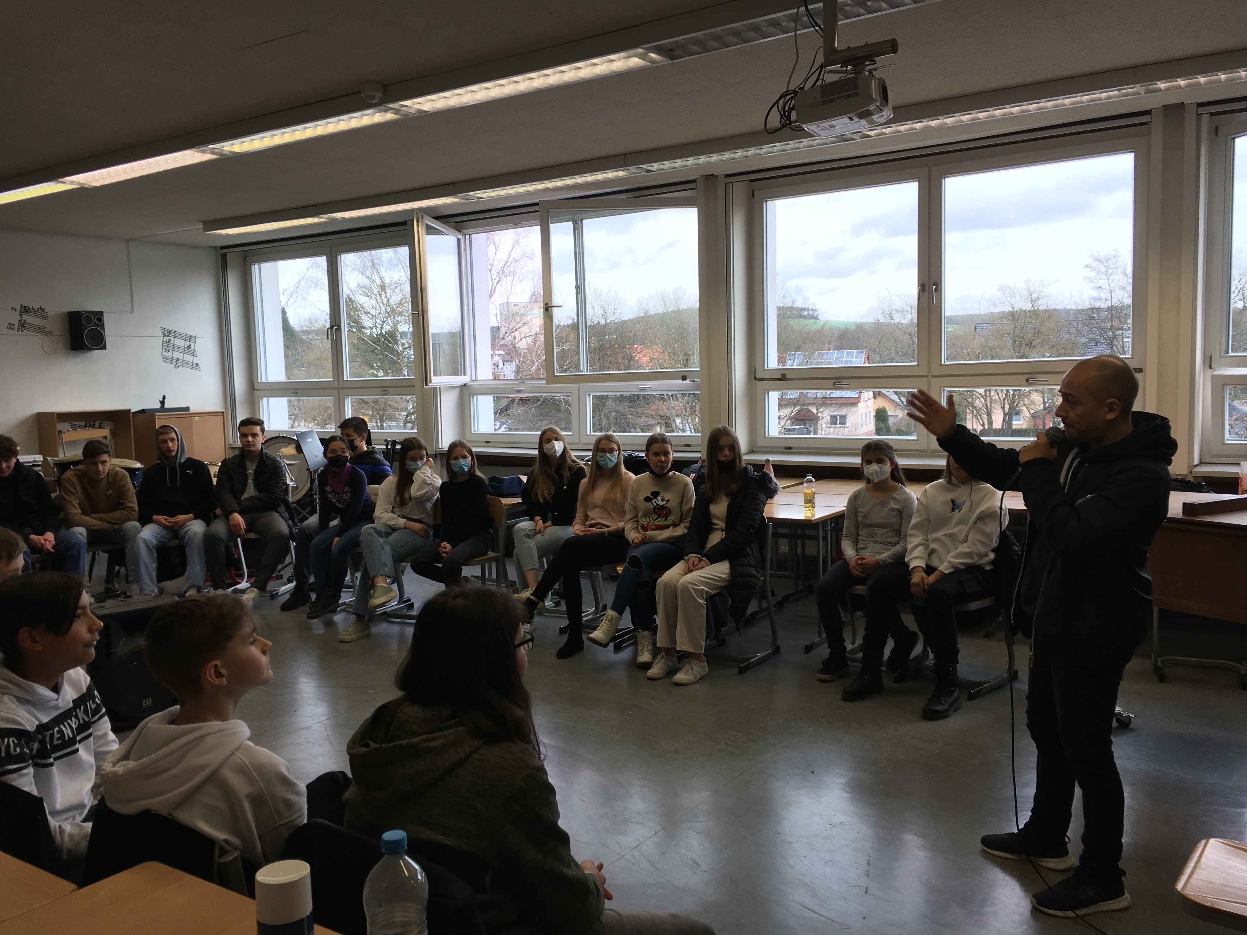 Im Beatboxen wird der ganze Körper zum Instrument, denn man benutzt seine Stimme, um Perkussionsgeräusche von beispielsweise Schlagzeugen nachzuahmen. Der Europameister im Beatboxen Robeat brachte den Teilnehmer*innen bei, wie man beatboxt und was die eigene Stimme alles kann, vor allem vor dem Hintergrund, dass diese ihre eigene Stimme entdecken, um so ihr Selbstbewusstsein zu stärken.