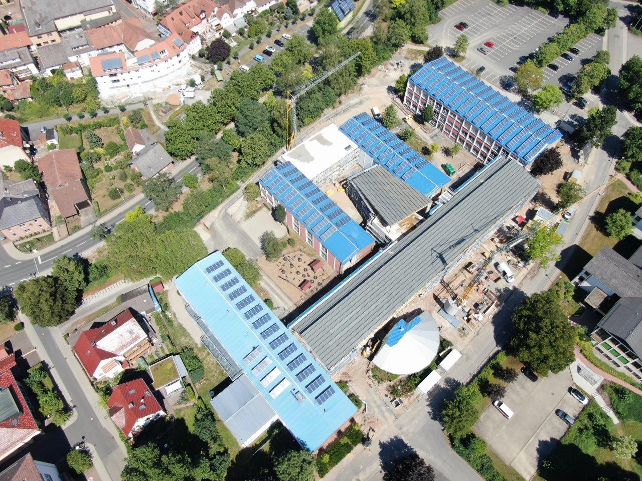Bürgermeister Roland Burger, Bauleiter Nico Hofmann und Schulleiter Jochen Schwab führten die Gäste über die Baustelle (Artikel vom 7. August 2020). Andreas Hanel von der RNZ stellte Luftbilder zur Verfügung: